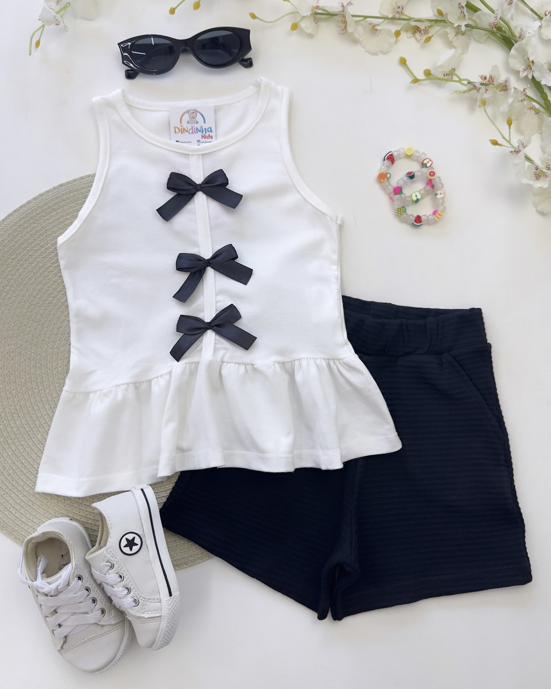 👧✨ Conjunto Infantil Feminino – Regata com Laços + Bermudinha ✨👧