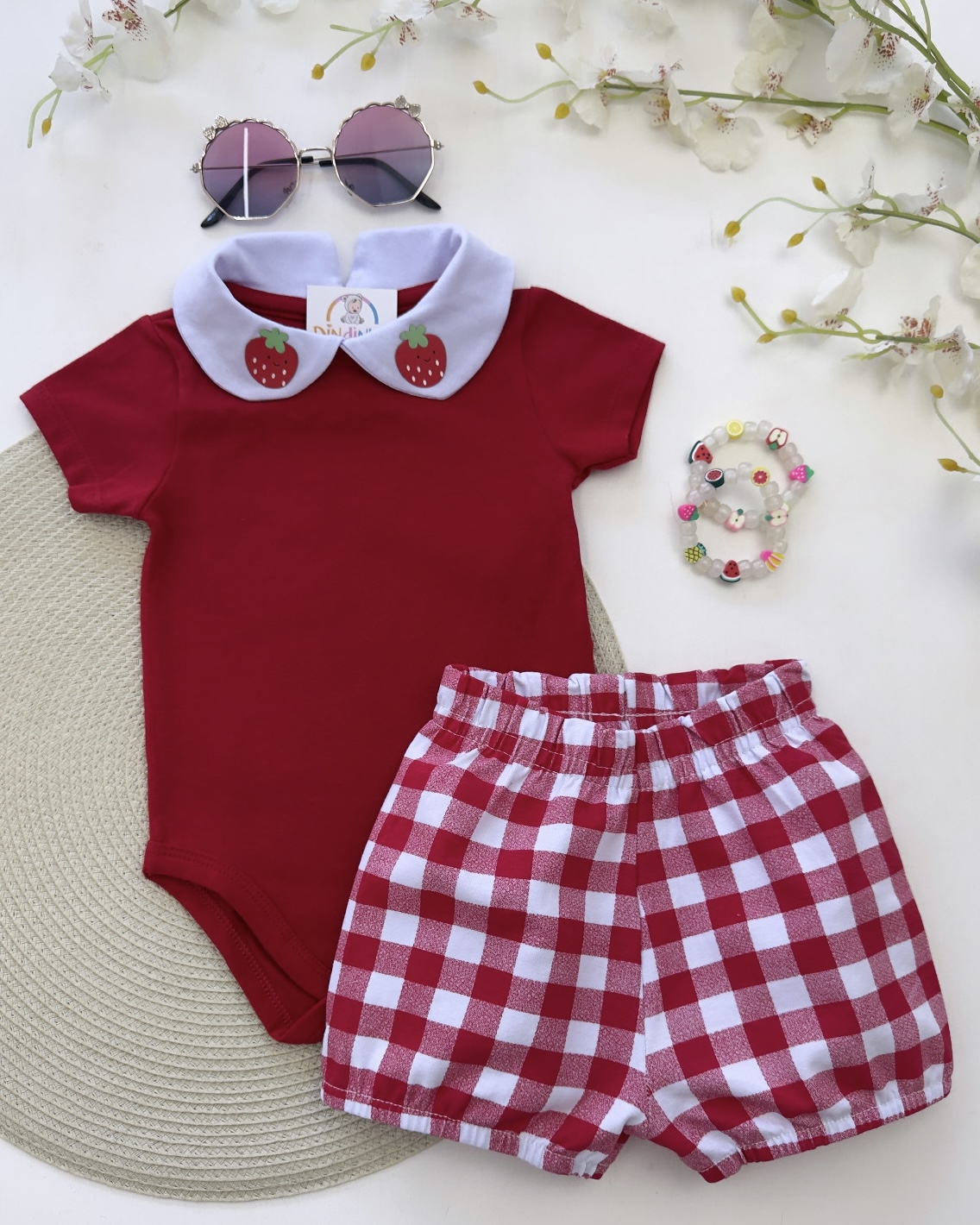 🍓👶✨ Conjunto Infantil Bebê Menina – Body + Short em Malha Premium ✨👶🍓